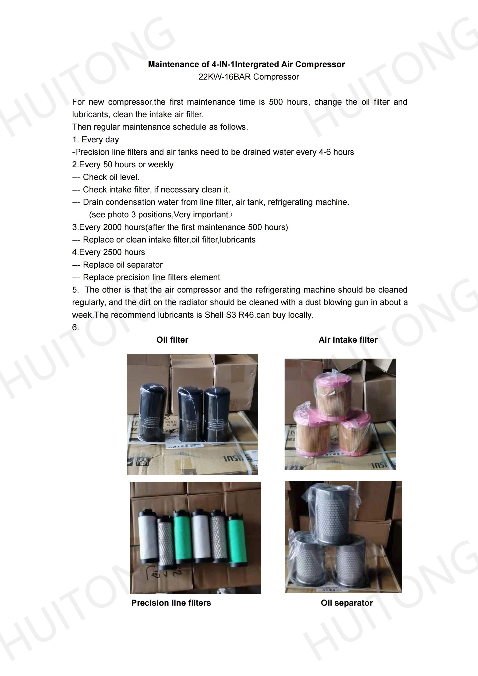 1. Every day -Precision line filters and air tanks need to be drained water every 4-6 hours
